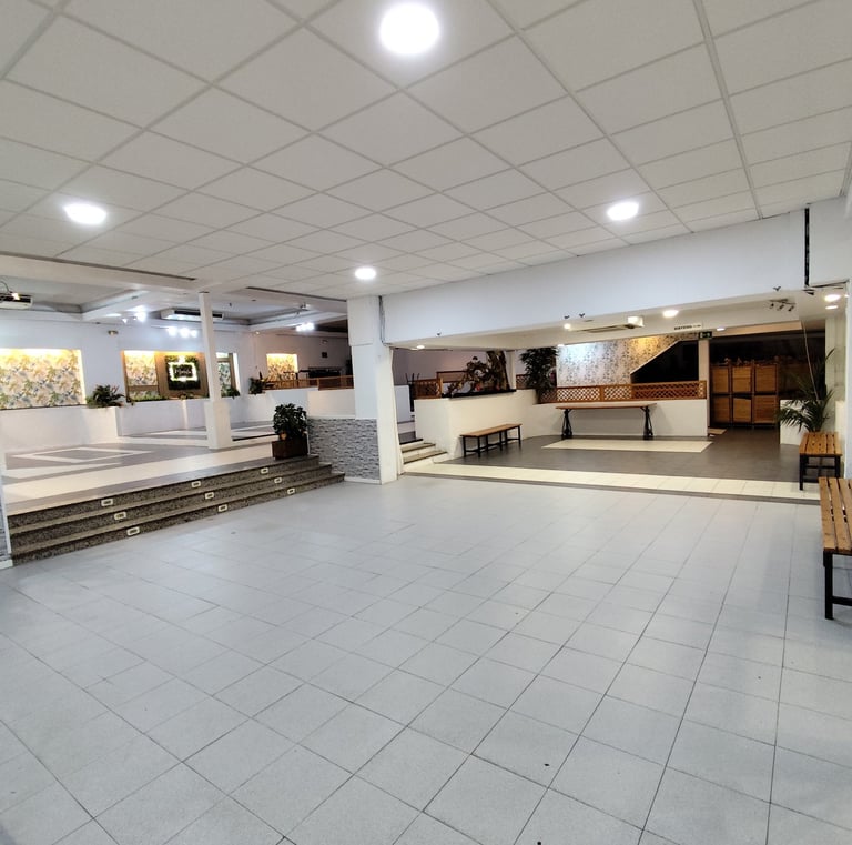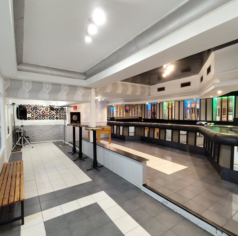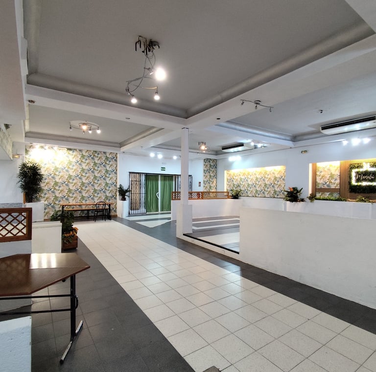 Espacio equipado con música, cocina, cámaras, congelador, sillas y mesas para tus eventos